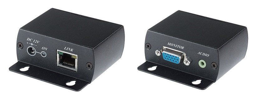 Комплект (передатчик VE01HAT+приёмник VE01HAR) для передачи VGA-сигнала высокого разрешения(1920х1200) и стерео аудиосигнала (20Гц-20кГц) по кабелю CAT5; Цифровое кодирование аудиосигнала; Дальность передачи: до 70 м.; DC 12В /500мА (БП в комплекте); -40°...+55°C; 87х27х67мм; Приёмник не требует внешнего источника питания; В комплекте соединительный шнур VGA и аудио (штекеры 3,5мм)