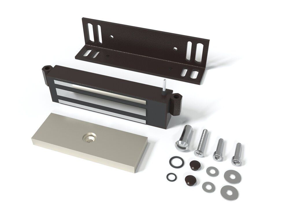 Замок электромагнитный для стальных дверей со стальной рамой, сила удержания 250кг, 9-15VDC, 0,6А, 7,2 Вт, встроенный модуль перемагничивания, монтажный комплект, уголок 40х50х4мм. Корпус из стали. -40…+45°C. Цвет корпуса (CB)- коричневый шоколад, магнит: 120х38х26 мм, пластина: 125х45х11,2 мм.