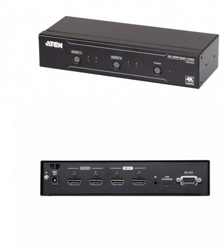 Переключатель матричный/Switch matrix, HDMI, 2> 2 монитора/port, без шнуров, (передача сигнала до 15 м.;макс.разр. до 4096x2160/3840 x 2160 60Hz (4:2:0)/30Hz (4:4:4);подд. 3D/DeepColor/HDCP 1.4/CEC), БП в комплекте, DC 5В, 4Вт, 0…+40°C, 200х76х42 мм.