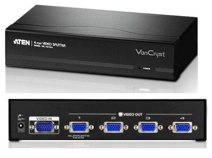 VS134A-A7-G – Видео Разветвитель ATEN VS134A дублирует видеосигнал от одного источника на 4 устройства отображения (мониторы, проекторы).