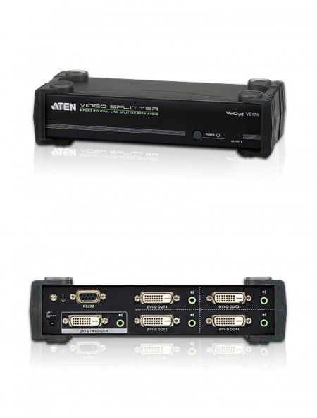 Разветвитель Video Splitter, DVI Dual Link+Audio, 1> 4 монитора/port, 5 м, без шнуров, 2560x1600 60Гц, БП в комплекте, DC 5.3В, 5.6 Вт, 0…+50°C, 210х88х55 мм.