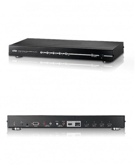 Переключатель Switch, HDMI, 4> 2 /4x2 телевизор/панель/port/монитор/проектор, (max data rate 6.75 гбит/с; max pixel clock 225 МГц; макс.разр.до 1920x1200 60Гц; 480P/720P/1080i/1080P; HDMI 1.4/HDCP 1.2; CPRO-3D42S), БП в комплекте, DC 5В, 7Вт, 0…+50°C, 437х158х44 мм.