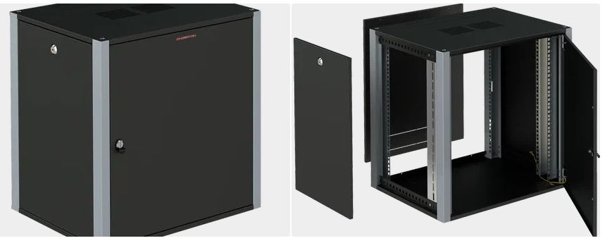 Шкаф телекоммуникационный настенный 19" 12U; дверь металл; IP20, 600x350x585mm(ШхГхВ); цвет черный(RAL 9004/RAL7000)