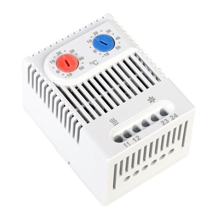 Термостат механический универсальный, на DIN-рейку, NC/NO, задаваемая t-включения от -10...+60°C, IP20, -20...+80°C, 67х50х46 мм.