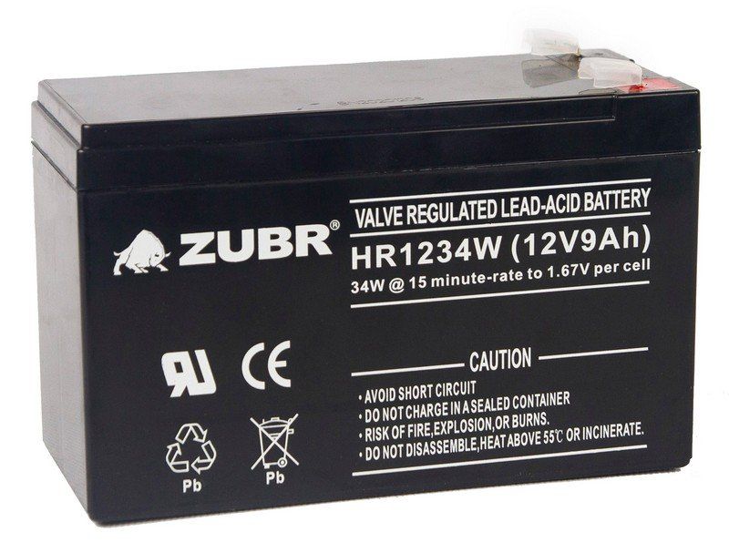 ZUBR HR 1234W (12V, 9Ah) Аккумулятор герметичный свинцово-кислотный