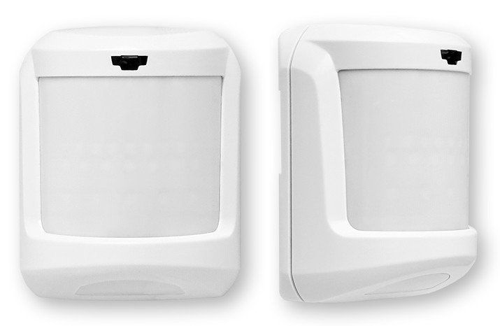 ИК, объемный, зона обнаружения 10м х 90°, "иммунитет" к животным до 20 кг, темпер.компенсация, режим "память тревоги", тампер, U-пит. 8...15 В, I-потр.15 мА, IP41, t-раб.-30...+50°С, 86×54×41 мм.