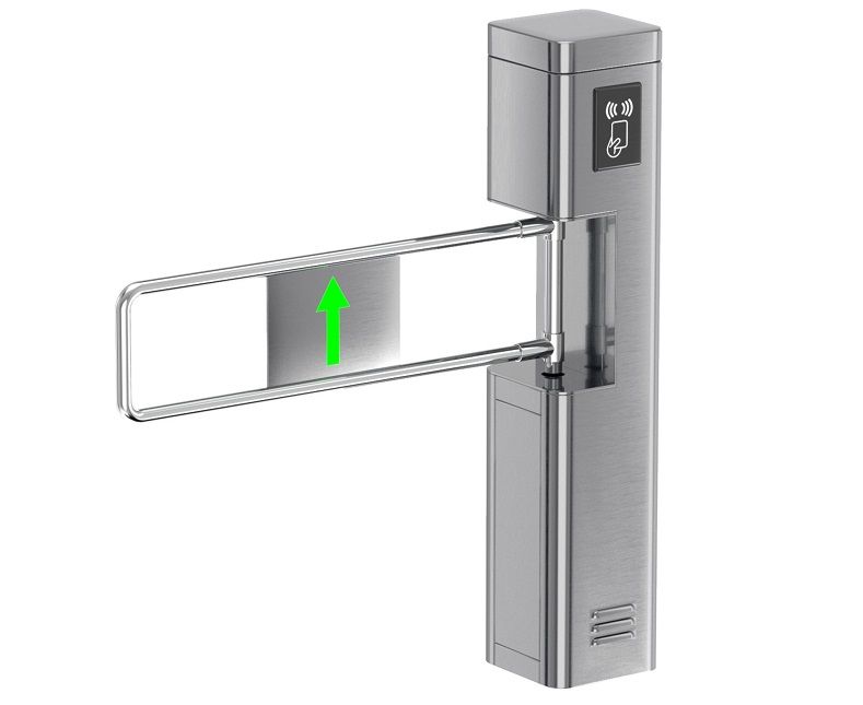 Полуростовая калитка, оснащенная створкой с электромоторным приводом, время распахивания створки - 0,2 сек, обеспечивает проход до 35 чел. в минуту. Модель с функцией “антипаника” - в случае возникновения внештатных ситуаций, при отключении электроэнергии, калитка разблокируется и обеспечивает свободный проход.