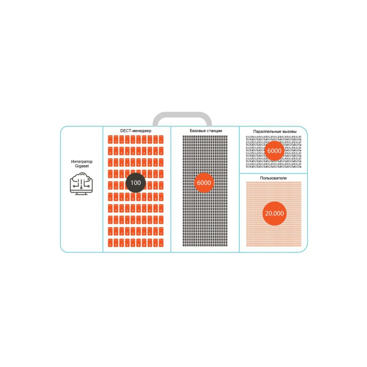Базовая станция Gigaset N870 и программного решения Gigaset Integrator позволяют подключить до 20 000 абонентов в одной сети.