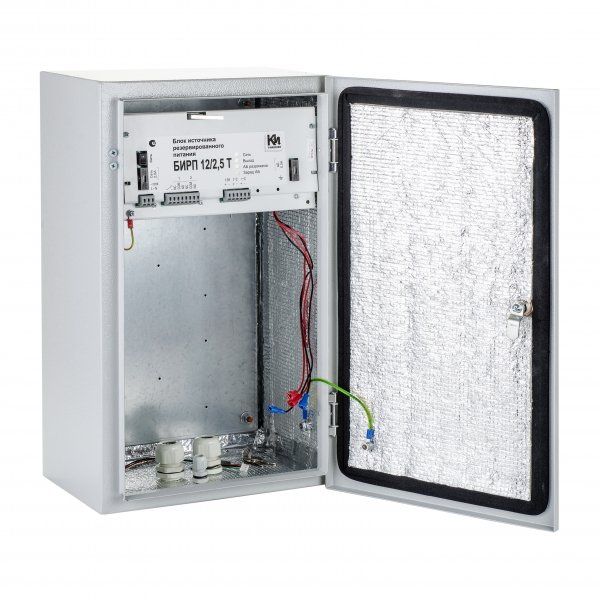 Блок источника резервированного питания БИРП-Т предназначен для гарантированного электроснабжения постоянным током технических средств охраны, сигнализации и связи.