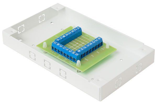 Позволяет удобно осуществить предварительную разводку магистральных кабелей с последующим подключением ИПДЛ к магистрали. Две группы клеммников предназначены для подключения входного и выходного кабелей магистрали, оконечного и добавочного резисторов и третья группа для подключения непосредственно к ИПДЛ.