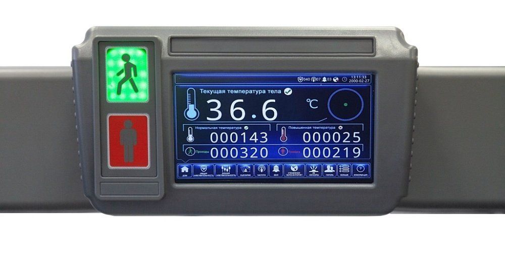 На верхней перемычке металлорамки закреплен цветной дисплей, на котором отражается число проходов, тревог, людей с нормальной температурой тела и людей с симптомами лихорадки. Наличие интерфейса для подключения детектора к ПК позволяет интегрировать рамку в систему безопасности объекта и управлять данным оборудованием удаленно.
