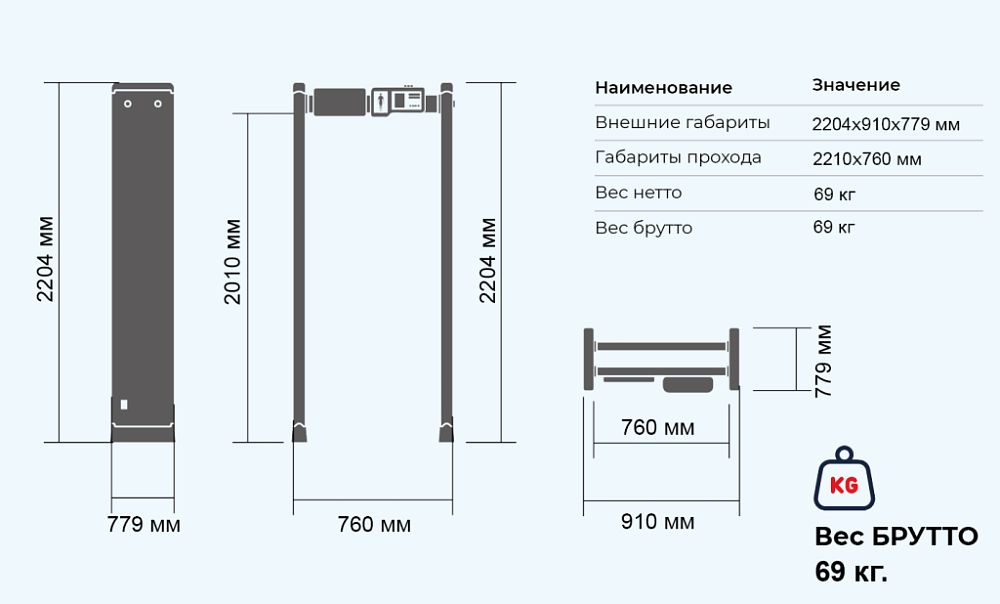 Вся информация о предмете сканирования выводится оператору на экран: вес, габариты, физические свойства. Одновременно поддается световой и звуковой сигналы.