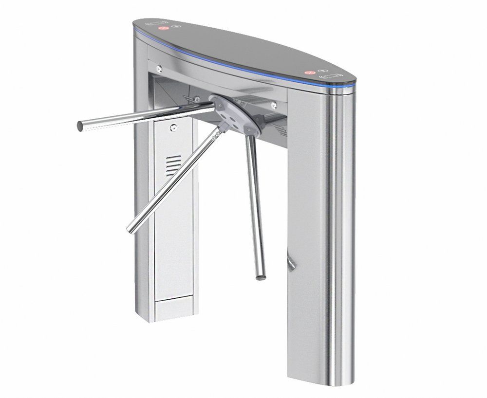 Тумбовый турникет трипод с автоматическими планками антипаника, ширина планки 500мм, встроенные считыватели Em-marine/Hid, Wiegand 26, 220 В, 50 Гц, IP54, -25 - +60°C. ПДУ и ИК-пульт в комплекте. Материал корпуса - нержавеющая сталь, 1200х300х1010 мм, 60 кг.