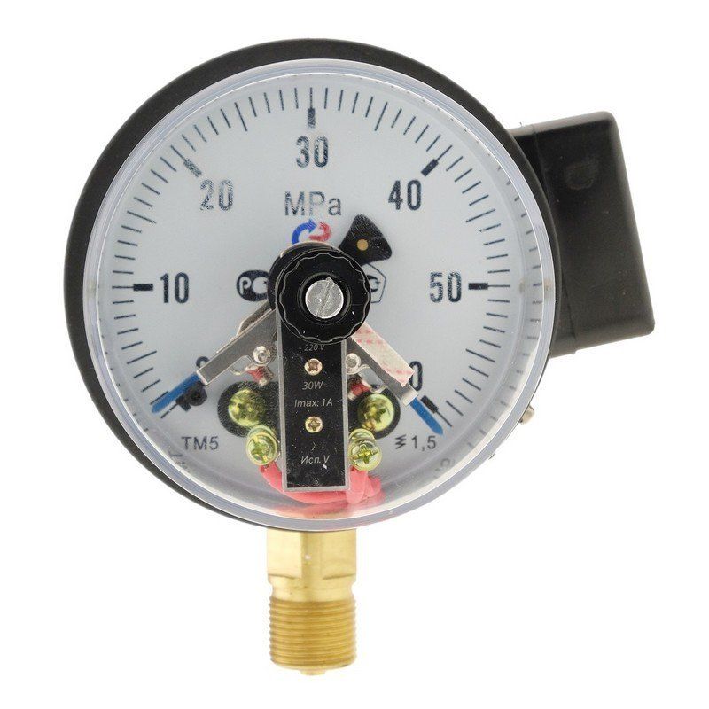 Электроконтактный манометр 0-60 бар для установки на модули газового пожаротушения. Применяются в станциях пожаротушения, которые используются для тушения двух и более защищаемых помещений. В случае изменения давления выше или ниже порогов, подается сигнал в систему охранно-пожарной сигнализации