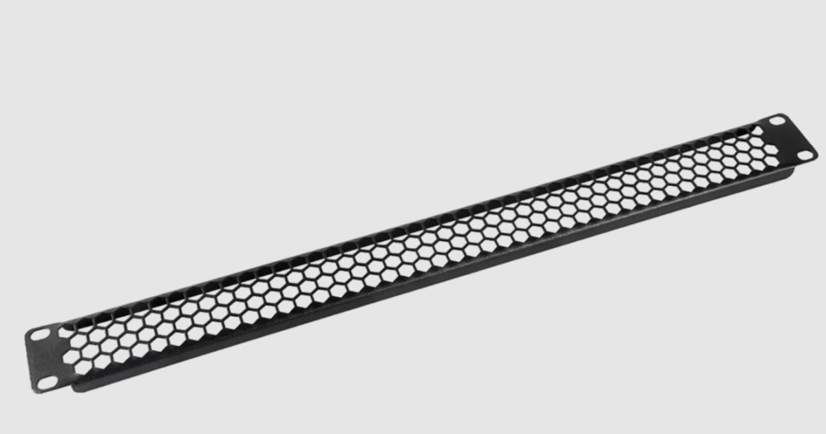 Фальш-панель перфорированная 1U, размеры 43,6х482,6 мм, цвет черный RAL 9005