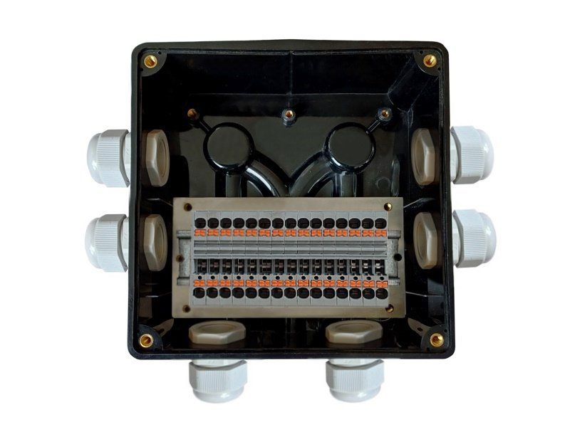 Коробка коммутационная усиленная выполнена из ударостойкого пластика со стенками толщиной 5 мм, устойчива к перепадам температур, ультрафиолету и предназначена для монтажа, коммутации электрических и кабельных линий, сигнальных шлейфов сигнализации, цепей питания.