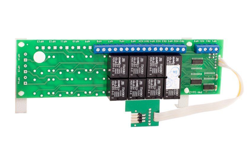 Релейный модуль на 8 мощных управляющих реле (250В, 7А) для установки в ППКОП модульного типа "Гранд Магистр-8-30"; каждое реле может быть запрограммировано на сработку от любого количества ШС одного типа: охранного по схеме "И" или пожарного по схеме "ИЛИ". Логика работы реле соответствует логике работы реле ПЦН соответствующего ШС.