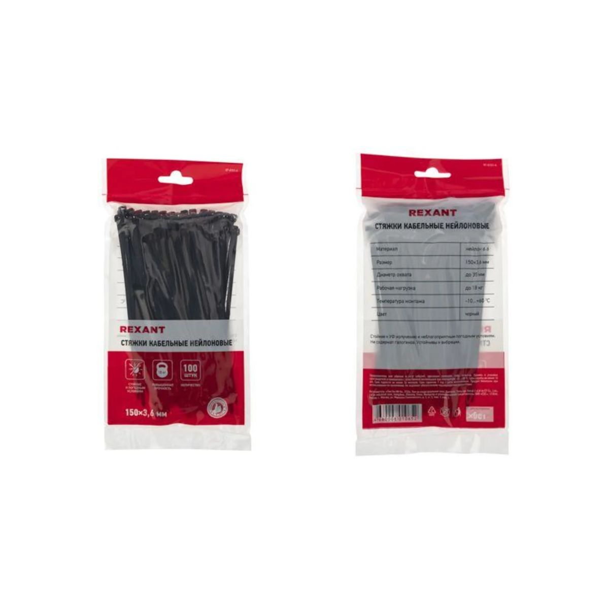 Хомут кабельный 3.6х150 нейл. черн. (уп.100шт) Rexant 07-0151-4