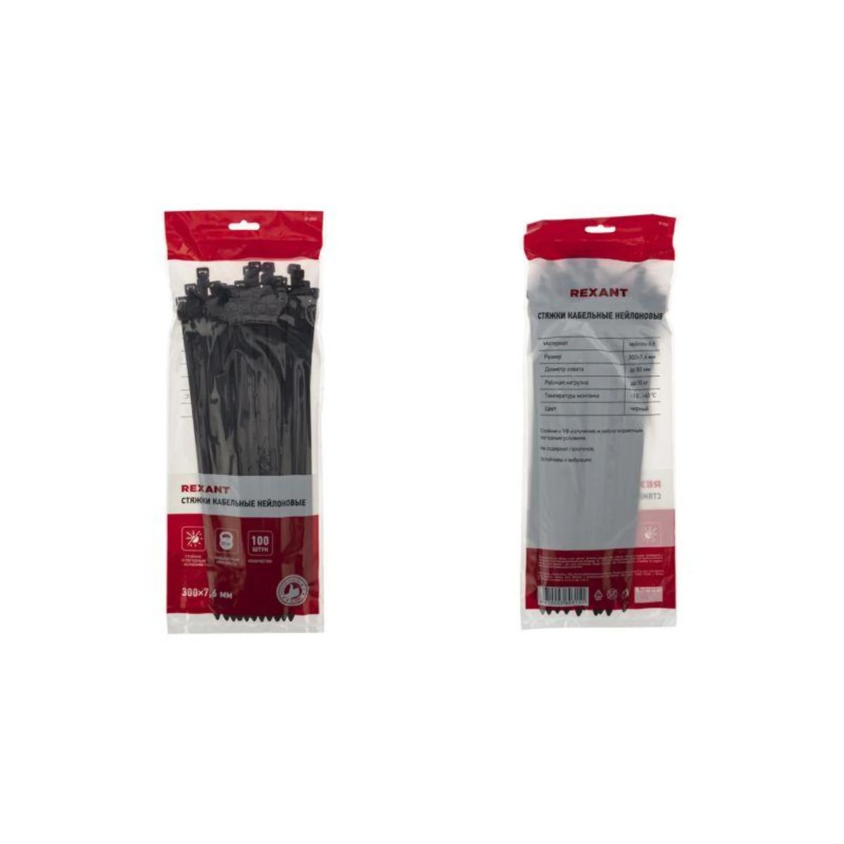 Хомут кабельный 7.6х300 нейл. черн. (уп.100шт) Rexant 07-0303