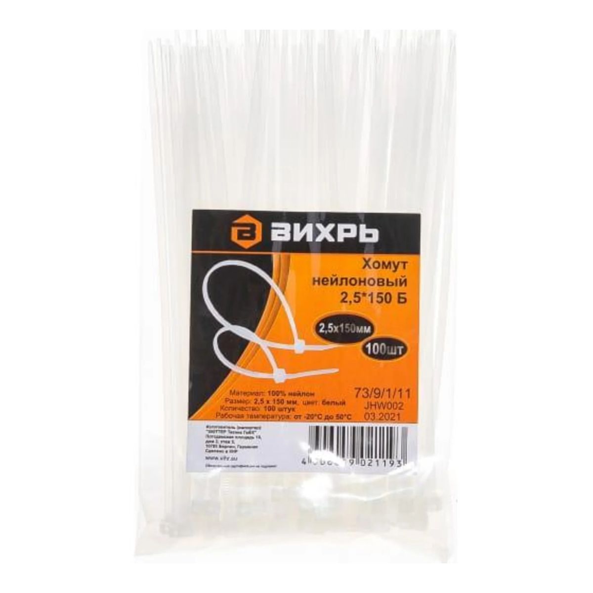 Хомут нейлоновый 2.5х150 Б (уп.100шт) Вихрь 73/9/1/11