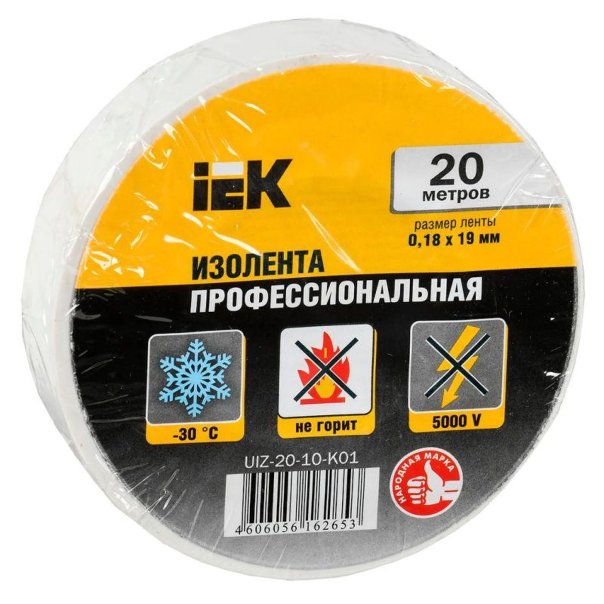 Изолента ПВХ 0.18х19мм бел. (рул.20м) IEK UIZ-20-10-K01