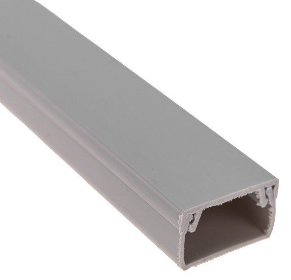 Кабель-канал с двойным замком серый, самозатухающий ПВХ, IP40, t-раб.-40…+70°C, 20х10х2000 мм