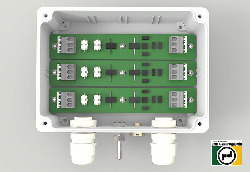 Коробка грозозащиты с восемью модулями ГР-2; защита до 16 цепей; IP65, t-раб.-50…+50°C, 295х210х100 мм