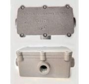 Коробка взрывозащищенная 1Еx d IIС Т6 Gb крестовая для выполнения соединений и ответвлений проводов и кабелей в стальных водо-газопроводных трубах (по ГОСТ 3262), 4 ввода с внутренней трубной цилиндрической резьбой «G 3/4"», рабочий объем 1400 см³; УХЛ1, IP 54, t-раб. -60...+45°C, габ.размеры 220х190х100 мм, корпус из алюминиевого сплава