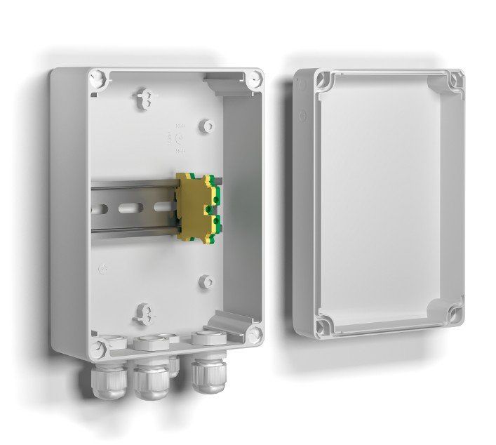 Коробка монтажная для коммутации электрических цепей. Клеммная колодка с 6-ю зажимами. IP66. T=-40°C...+80°C. 210х125х75 мм В комплекте DIN-рейка.