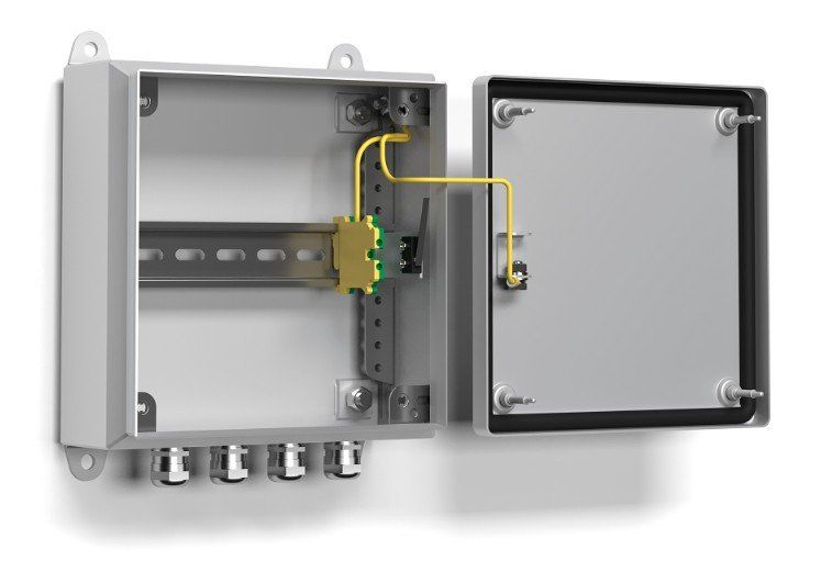 В коробке КМ-4 установлена 35 мм DIN-рейка для крепления на ней электронных устройств, например, одного, двух или трех устройств защиты от импульсных перенапряжений.