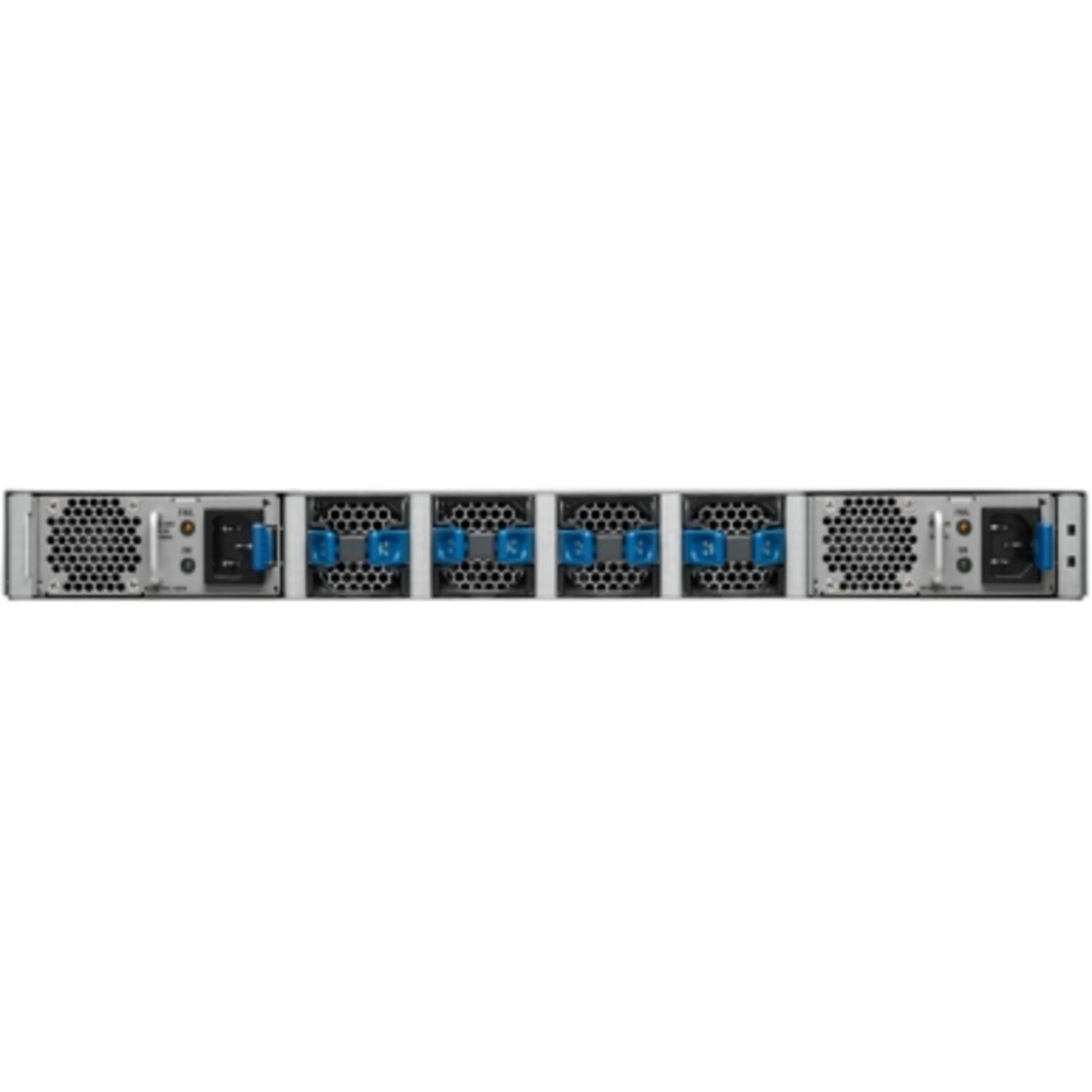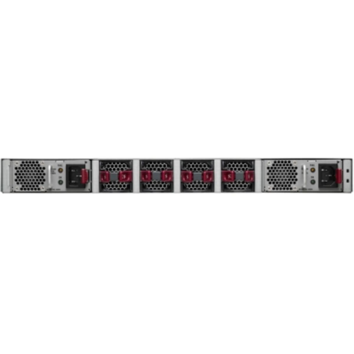 | Охлаждение | Forward and reversed airflow schemes: • Forward airflow: Port-side exhaust (air enters through fan tray and power supplies and exits through ports) • Reversed airflow: Port-side intake (air enters through ports and exits through fan tray and power supplies) Four individual, hot-swappable fans (3+1 redundant) | ||
