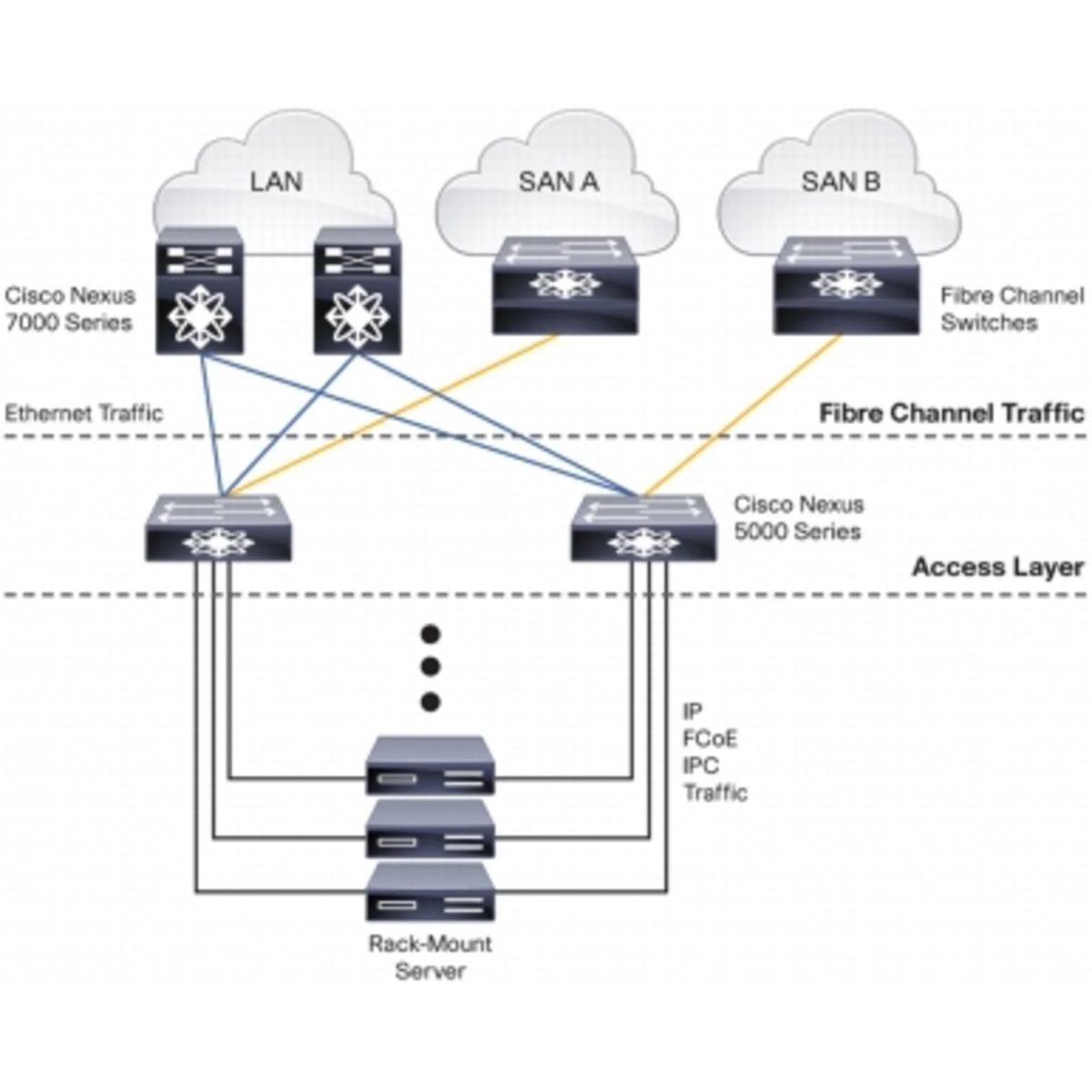 Cisco Nexus 5000 серии, это семейство коммутаторов для ЦОД с портами 10Гбит/с Ethernet, и поддержкой Cisco Data Center Ethernet (DCE) и Fibre Channel over Ethernet (FCoE). Данная серия коммутаторов использует технологию cut-through, что обеспечивает низкую задержку коммутации.