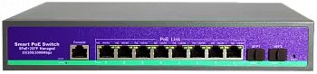 L2, 8 х 10/100/1000 Мб/с PoE RJ45, 2 х 10/100/1000 Мб/с SFP; бюджет PoE до 110 Вт