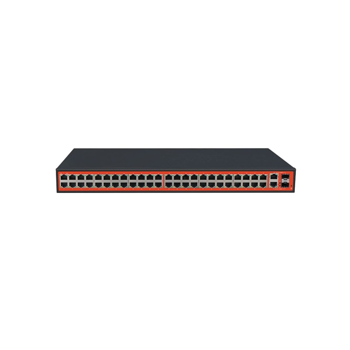 Коммутатор оснащен 48 портами 100Base-TX с поддержкой 802.3af/at (PoE, PoE+) c общим бюджетом 700 Вт, 2 комбо-портами 1000Base-T/SFP.