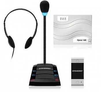 В комплект входят дуплексное переговорное устройство STELBERRY S-401 и сетевой профессиональный аудиорегистратор «Sprut-SR-500» на два или четыре аудиоканала, способный обеспечить эффективную запись клиент-кассир.