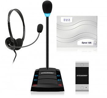 Комплекс аппаратуры STELBERRY SX-402 состоит из одного или нескольких комплектов настольного переговорного устройства клиент-кассир и 2-х или 4-х канального устройства записи разговоров Sprut-SR-500.