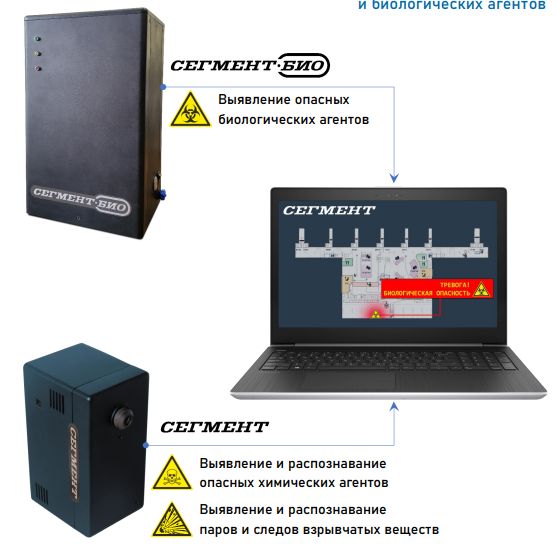 Комплекс состоит из масштабируемого комплекта, включающего устройства автоматического типа, способные осуществлять непрерывный контроль качества воздуха, выявлять и идентифицировать опасные агенты биологического и химического характера, а также взрывчатые вещества. Преимущества комплекса: