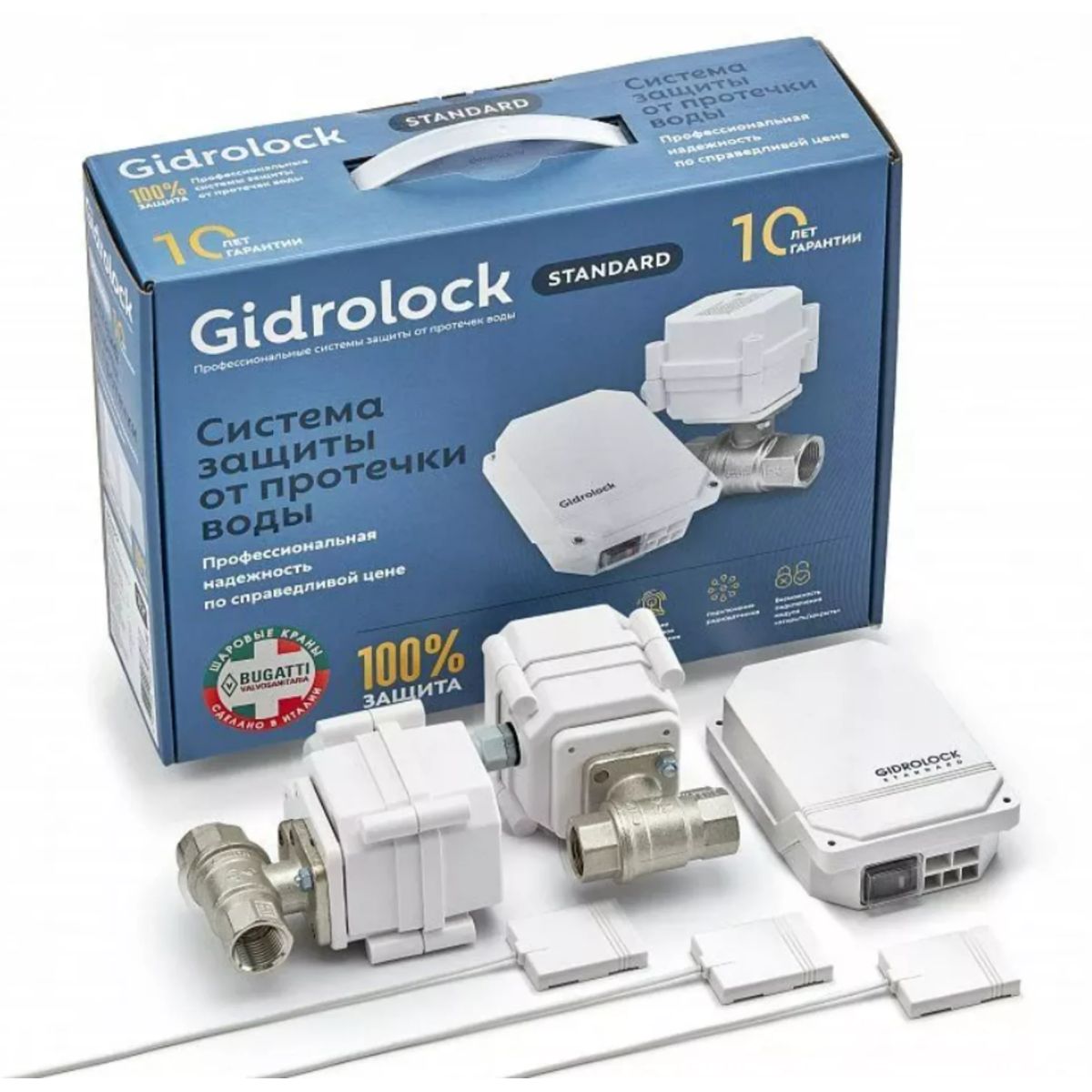 Комплект защиты от протечки воды Gidrolock Standard Bugatti предназначен для своевременного автоматического перекрытия подачи воды в квартире или загородном доме. Система обезопасит Вас от негативных последствий потопа при помощи высококачественных итальянских шаровых кранов Bugatti с электроприводом Gidrilock. При попадании влаги на контакты проводного датчика WSP, блок управления Standard проинформирует о возникшей аварии звуковым сигналом и одновременно даст команду шаровым кранам Bugatti с электроприводом Gidrolock перекрыть подачу воды в помещение. При необходимости, количество установленных датчиков в возможных местах протечки можно увеличить до 200 шт.