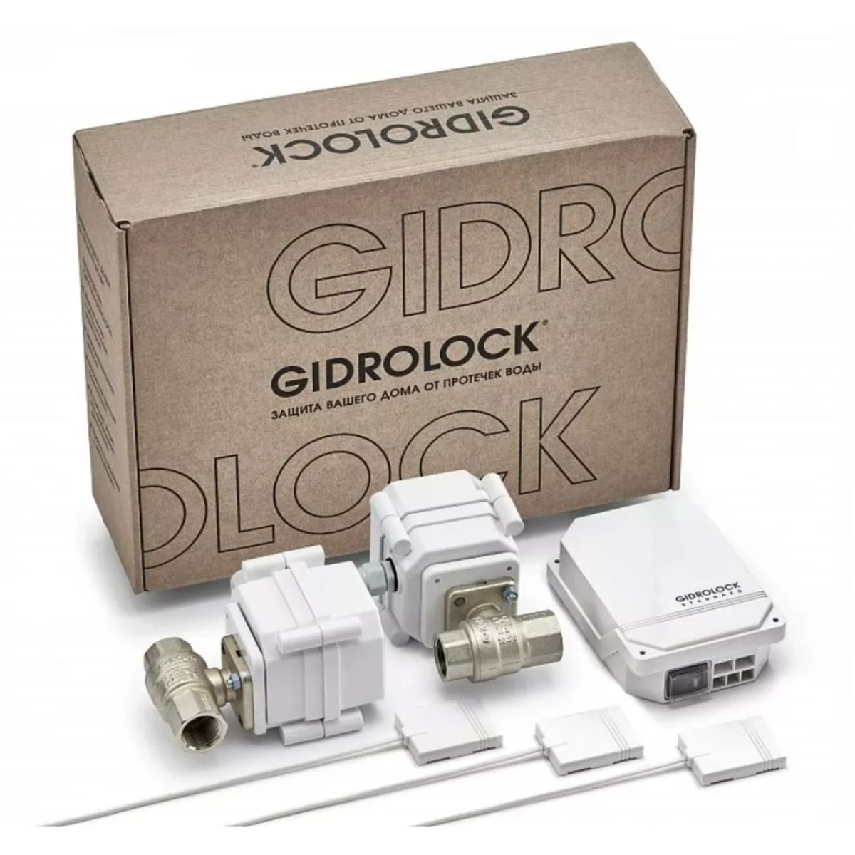 Комплект защиты от протечки воды Gidrоlock Standard G-LocK предназначен для своевременного автоматического перекрытия подачи воды в квартире или загородном доме. Система обезопасит Вас от негативных последствий потопа при помощи высококачественных фирменных шаровых кранов G-Lock с электроприводом Gidrolock. При попадании влаги на контакты проводного датчика WSP, блок управления Standard проинформирует о возникшей аварии звуковым сигналом и одновременно даст команду шаровым кранам G-Lock с электроприводом Gidrolock перекрыть подачу воды в помещение. При необходимости, количество установленных датчиков в возможных местах протечки можно увеличить до 200 шт.