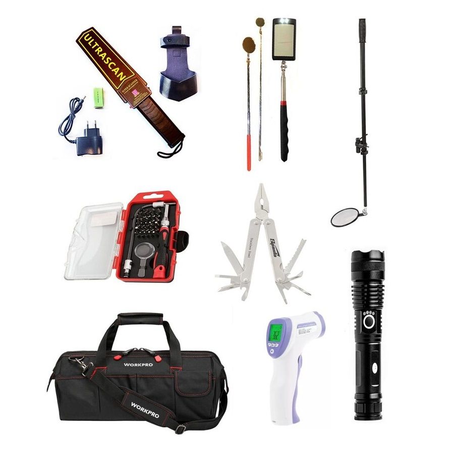 Набор состоит из самых необходимых досмотровых устройств, удобных в использовании и транспортировке (компактно помещаются в специальной сумке). Комплект состоит из предметов, которые могут использоваться не только по своему прямому назначению, но и являются весьма полезными в быту. Особенные свойства досмотровых средств: