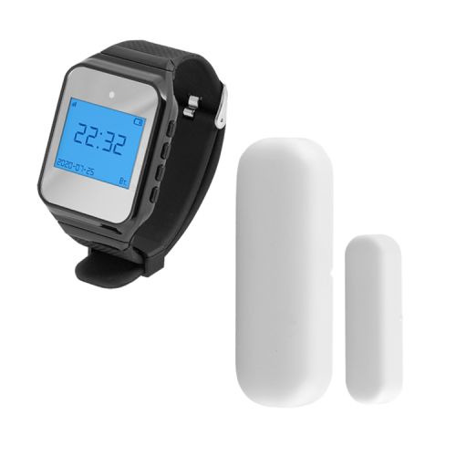 Простой монтаж датчика: блок меньшего размера крепится к двери с помощью клейкой ленты, второй блок – к проему. Пейджер крепится на руке ответственного сотрудника с помощью гибкого ремешка.
