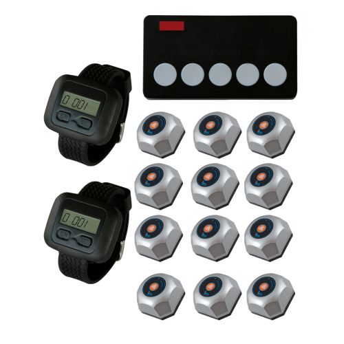 Принцип работы: при настройке системы каждая кнопка подключается к пейджеру под определенным номером. Если посетитель хочет вызвать официанта, он нажимает на кнопку. Официант получает вызов и приходит к посетителю.