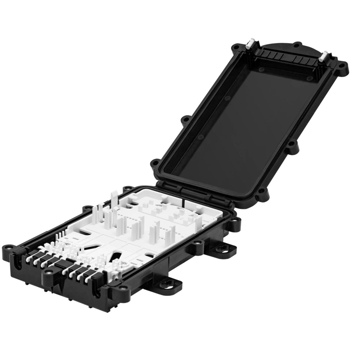 Внутри малогабаритного бокса установлена откидная панель, на одной стороне которой расположена сплайс-кассета для размещения 36 гильз КДЗС (два этажа) и запаса оптических волокон, а на другой размещены фиксаторы, позволяющие устанавливать до 10 адаптеров типа SC/LC Duplex, а также 2 оптических делителя. Область размещения адаптеров и делителей оснащена дополнительной защитной крышкой. Конструкция панели существенно упрощает процесс монтажа и последующего обслуживания.