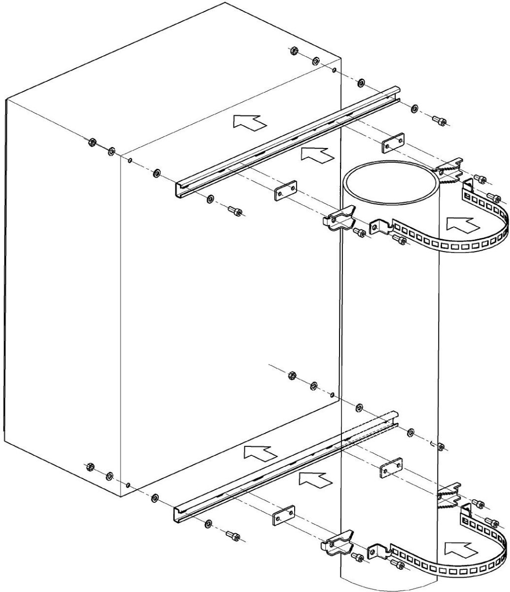 Крепление шкафов ТШ шириной 800 мм, на квадратные размером 50...150 мм и круглые опоры диаметром 40...190 мм.