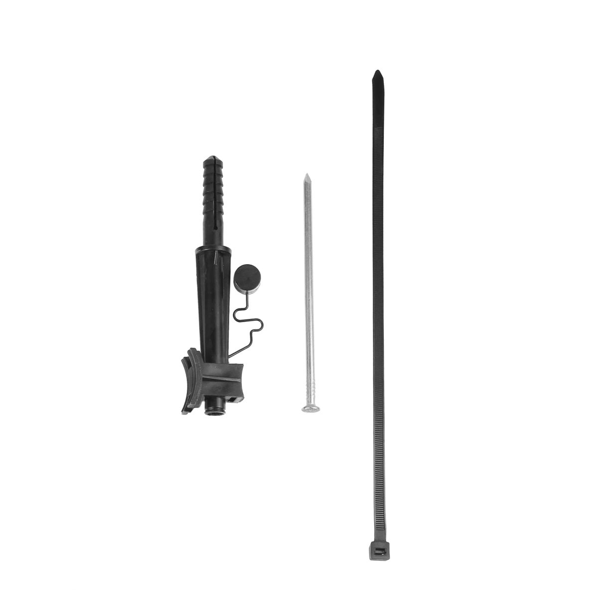 Дюбельная часть крепления устанавливается в предварительно просверленное отверстие диаметром 12 мм и закрепляется с помощью гвоздя, который поставляется вместе с креплением.