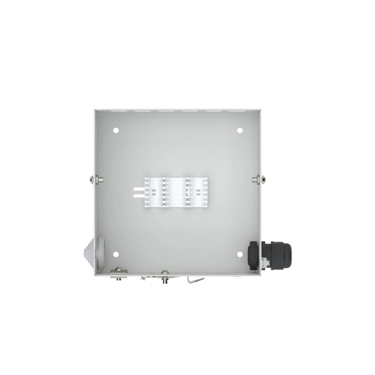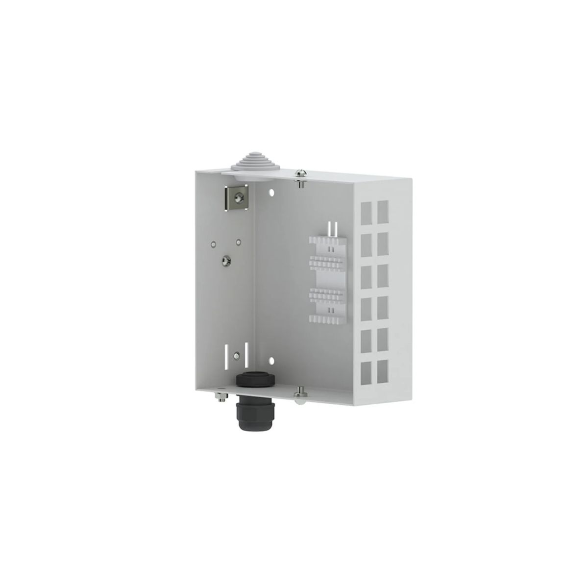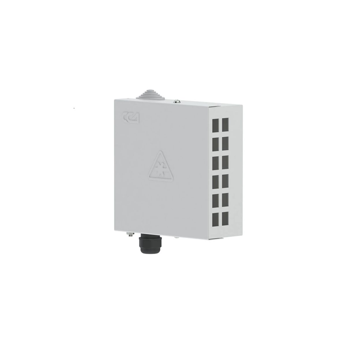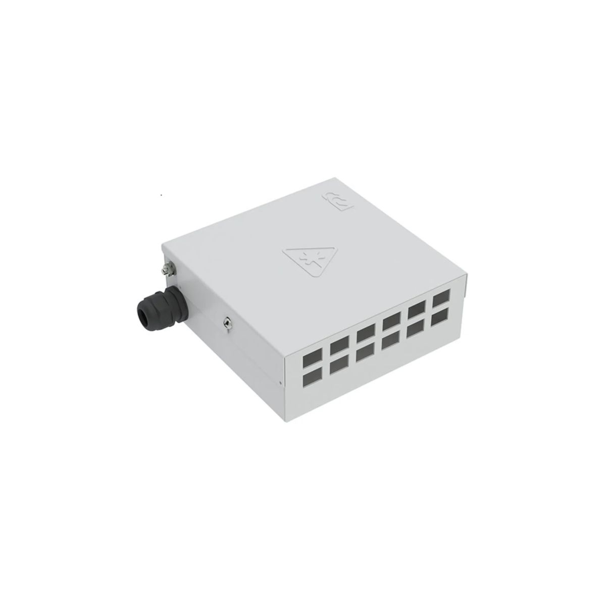 Корпус кросса изготовлен из металла толщиной 1 мм и покрыт порошковой краской цвета RAL7035. Легкосъёмная крышка фиксируется двумя винтами. Оптический кабель можно завести, как снизу, так и сверху. А благодаря разомкнутому контуру на одном из вводов, можно завести оконцованную разъемами кабельную сборку. Внутри кросса расположен сменный ложемент Л12 или Л24, в зависимости от комплектации. Адаптеры устанавливаются в отверстиях на передней панели корпуса.