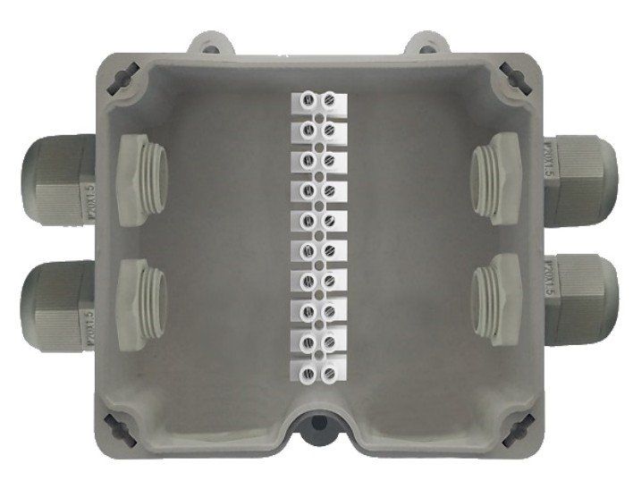 Отличительной особенностью коробки является высокая степень защиты от пыли и влаги и возможность установки в ней различных кабельных вводов для подключения всех существующих видов кабельной прокладки, шин заземления, клапана выравнивания давления, комплектация двухкомпонентным компаундом.