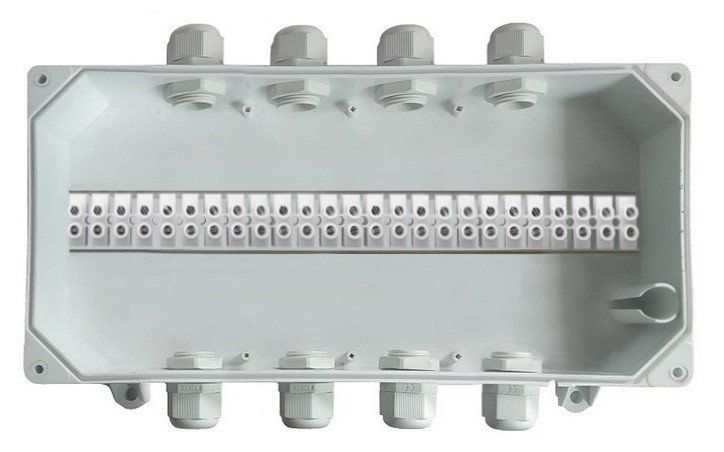 Отличительной особенностью коробки является высокая степень защиты от пыли и влаги и возможность установки в ней различных кабельных вводов для подключения всех существующих видов кабельной прокладки, шин заземления, клапана выравнивания давления, комплектация двухкомпонентным компаундом.