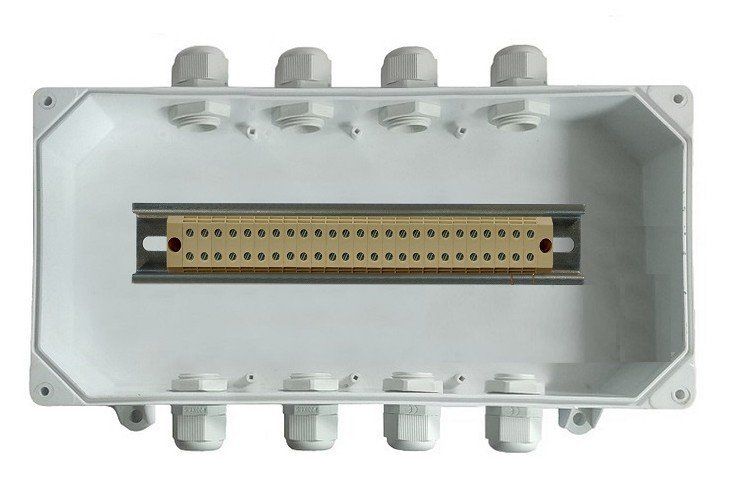 Отличительной особенностью коробки является высокая степень защиты от пыли и влаги и возможность установки в ней различных кабельных вводов для подключения всех существующих видов кабельной прокладки, шин заземления, клапана выравнивания давления, комплектация двухкомпонентным компаундом.