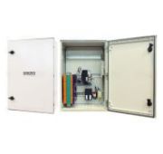 Коробка коммутационная взрывозащищенная для греющего кабеля с вводом под теплоизоляцию 1Ex e IIB T5 Gb, клеммник 6х35мм, 6х35РЕ, УХЛ1, IP66, t-раб.-60...+85°С, 220х330х110мм. Корпус из алюминиево-кремниевого сплава, 2 кабельных ввода для силового кабеля с заглушкой КВ М32, 2 кабельных вывода с возможностью подключения до 6 греющих лент